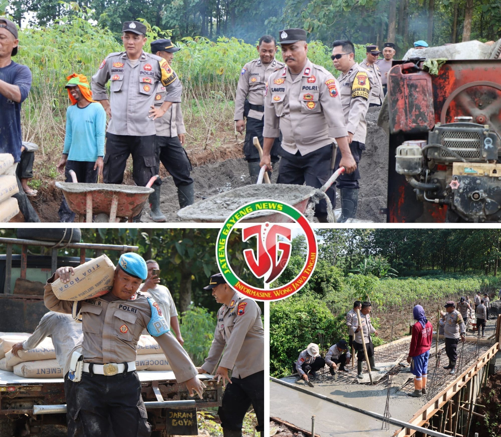 Kegiatan pengecoran sebagai tahap akhir pembangunan dilaksanakan pada Jumat (17/4/2026) pagi di kawasan Petak 38 M Blok Bunder, wilayah hutan Perhutani RPH Sukobubuk BKPH Muria Pati. Proses ini melibatkan jajaran kepolisian bersama masyarakat setempat yang bergotong royong di lokasi.